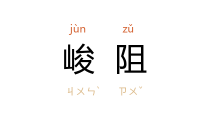 引汉 刘歆 《甘泉宫赋》:“高峦峻阻,临洮广衍。”晋 左思 《蜀都赋》:“至乎临谷为塞,因山为障,峻岨塍埒 长城,豁险吞若巨防。”南朝 梁 何逊 《渡连圻》诗之一:“此山多灵异,峻岨实非恒。”清 吴敏树 《杂说》:“然余所过阪非峻阻,雨骤未泞,而驘以死拒不行。”