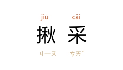 引《初刻拍案惊奇·卷二四》:「老道著恼,喝叫猴形人四五个来揪采将来,按住在坐上。」