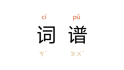 ⒈ 指每一词牌的格式,亦指集合词调各种体式,经过分类编排,给填词者作依据的书。内容主要介绍填词的各种规则,如字句定额、声韵安排、词调来源等。现传最早的词谱为明·张?《诗余图谱》。较完备的有清·万树的《词律》和清·王奕清等合编的《钦定词谱》。