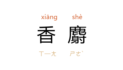 ⒈ 动物名。鹿科麝属。体形小,耳长尾短,无鹿角。以青草、树叶、苔类为食。雄麝腹部有卵状香腺,会分泌麝香,称为「麝香囊」。世人多将其囊干燥、加工处理后,做为香水的原料。