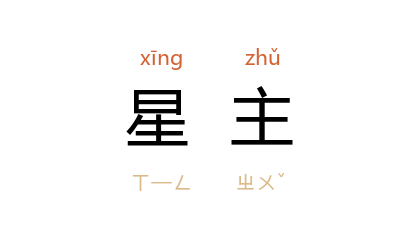 ⒈ 小说中常以忠正之臣为重要的星宿转世,称为「星主」。