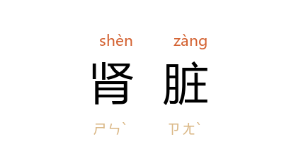 ⒈ 五脏之一。位在腹腔的后背,脊椎的两侧,左右共二枚相对,呈扁卵圆形,红褐色。为分析血液中废料成尿液的器官,及分泌肾素、红血球生成素两种激素的内分泌器官。
