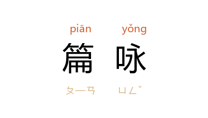 引唐 皇甫冉 《闲居作》诗:“篇咏投 康乐,壶觴就 步兵。”《旧唐书·德宗纪赞》:“赐宴之辰,徒矜篇咏。”宋 吴处厚 《青箱杂记》卷三:“真宗 听政之暇,唯务观书。每观毕一书,即有篇咏,使近臣賡和。”