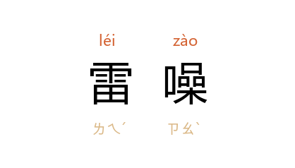 ⒈ 见“雷噪”。雷鸣般的喧哗声。一本作“雷譟”。