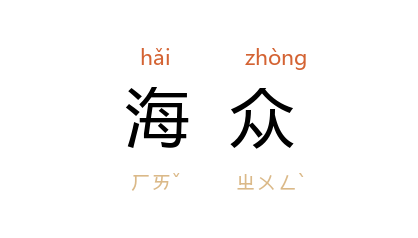 引宋 陶穀 《清异录·释族》:“道忠 行化 餘杭,一钱不遗,专供 灵隐 海众。”一本作“僧众”。 金 自觉 《大明禅院颂记》:“十万海众,共唱太平之歌。”清 钱谦益 《憨山大师曹溪肉身塔院碑》:“启龕双趺儼然,髮爪俱生,容颜光润,膀腹下垂处皆可捫揣,海众踊跃,谓师再生。”