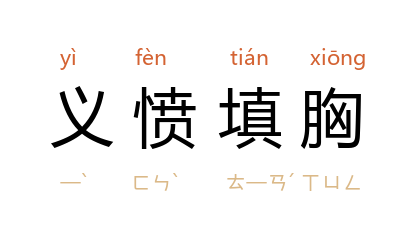 ⒈ 胸中充满因正义而产生的愤怒。也作「义愤填膺」。