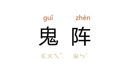 引宋 无名氏 《采兰杂志》:“吴耽 不好碁,见人着,曰:‘汝非死将军,奈何輒以鬼阵相攻?’后人因名碁曰‘鬼阵’。”清 王晫 《快说续记》:“数人在座,独两人好为鬼阵,争劫叫嚣,喧不可耐。”