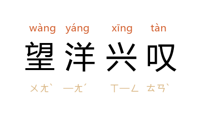 引《庄子·秋水》:「河伯始旋其面目,望洋向若而叹。」