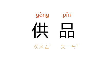 ⒈ 供奉神佛祖宗用的瓜果、酒食等物品的统称。
