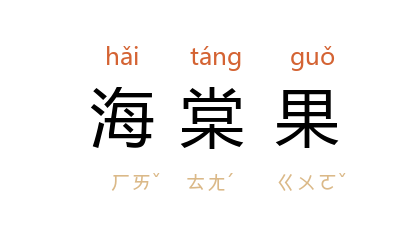 ⒈ 海棠所结的果实。秋间成熟,皮红,味酸可食。