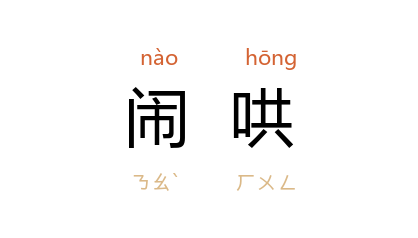 ⒈ 闹乱、喧哗。。也作「闹哄」。