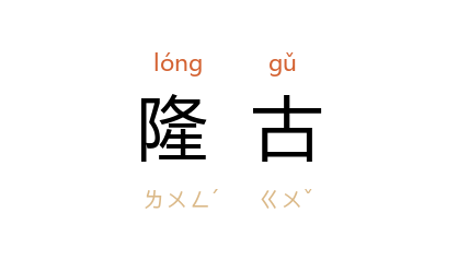 引唐 萧颖士 《过河滨和文学张志尹》:“隆古日以远,举世丧其淳。”明 刘基 《官箴》中:“在昔隆古,分封国都。”清 谭嗣同 《仁学》二:“至变易降衷之恆性,变易隆古之学术,至杀其自家,杀家种类,以宛转攀恋於数千年之久,而不思脱其軛耶?”
