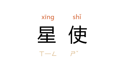 ⒈ 古时认为天节八星主使臣事,因称帝王的使者为星使。