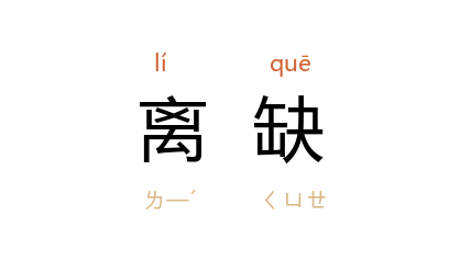 引宋·柳永〈小镇西·意中有个人〉词:「欠离缺,夜来魂梦里,尤花?雪。」《董西厢·卷六》:「恰俺与莺莺,鸳帏暂相守,被功名使人离缺。」