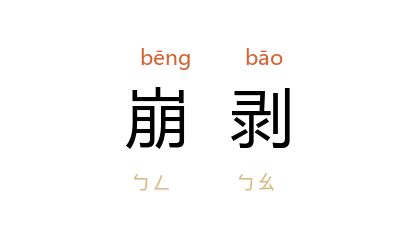 引北魏 杨衒之 《洛阳伽蓝记·正始寺》:“纤列之状如一古,崩剥之势似千年。”唐 韦应物 《答河南李士巽题香山寺》诗:“墻宇或崩剥,不见旧题名。”清 陈维崧 《倾杯乐·善权寺火》词:“雨淋浪,蘚崩剥,坏梁雷篆。”