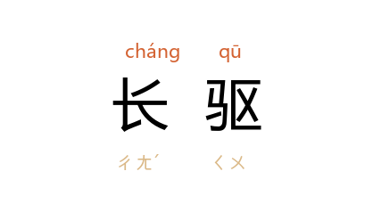 ⒈ 亦作“长駈”。亦作“长敺”。向前奔驰不止;长途向前驱驰。