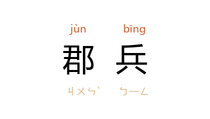 ⒈ 地方武装力量。汉沿秦制置材官于郡国,郡有都尉,佐太守典武职甲卒。中央有南、北军。汉武帝时更置八校,隶属于北军。国家有事,则调发郡国之兵。唐代府兵,基本上沿袭秦汉郡兵旧制。参阅《文献通考·兵考》。