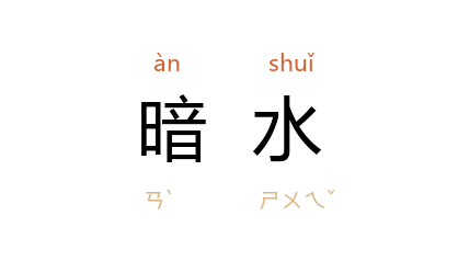 引唐 李百药 《送别》诗:“夜花飘露气,暗水急还流。”宋 苏轼 《二十七日自阳平至斜谷宿于南山中蟠龙寺》诗:“谷中暗水响瀧瀧,岭上疎星明煜煜。”明 凌云翰 《关山雪霁图》诗:“扶桑 飞上金毕逋,暗水流澌度空谷。”