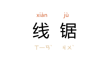 ⒉ 紧绷在锯架上的窄条细齿锯,用于锯格子、涡卷和其他曲线形轮廓。