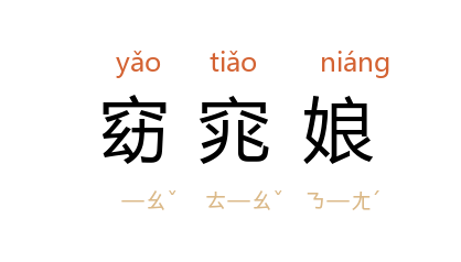 引宋 赵令畤 《侯鲭录》卷三:“参寥 口占一絶云:‘多谢尊前窈窕娘,好将幽梦恼 襄王 ;禪心已作沾泥絮,不逐东风上下狂。’”元 关汉卿 《裴度还带》第四折:“雾鬢云鬟窈窕娘,绣球打中状元郎。”明 叶宪祖 《夭桃纨扇》第八出:“年少郎,须欢畅;窈窕娘,休悒怏。”