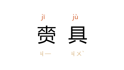 ⒈ 携带的用具。 《新唐书·裴坦传》:“坦 性简俭,子娶 杨收 女,齎具多饰金玉。