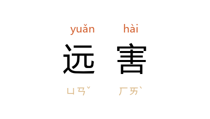 引汉 刘向 《列女传·邹孟轲母》:“夫君子学以立名,问则广知,是以居则安寧,动则远害。”《初刻拍案惊奇》卷十二:“适间这位贵友,途路之中,如此轻薄无状,岂是全身远害的君子!”鲁迅 《且介亭杂文·难行和不信》:“‘不相信’就是‘愚民’的远害的堑壕,也是使他们成为散沙的毒素。”
