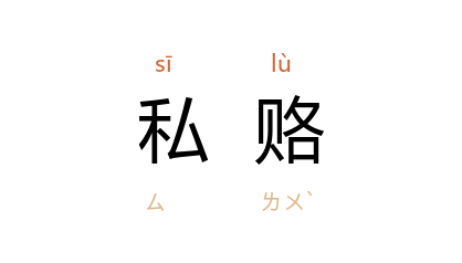 引《史记·晋世家》:“季平子 私赂 范献子,献子 受之。”《后汉书·贾琮传》:“上承权贵,下积私赂,吏民怨叛。”《古今小说·临安里钱婆留发迹》:“想此碑虽然毁碎,尚可凑看,乃私赂守门吏卒,在庭中拾将出来。”