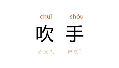 引《水浒传》第一〇九回:“吹手点鼓,宣令官传令毕,营哨头目,依次磕头,起站两边。”《儒林外史》第六回:“直到日头平西,不见一个吹手来。”清 李渔 《凰求凤·酸报》:“远远望见轿子来了,叫儐相、吹手出来伺候。”