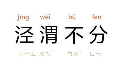 ⒈ 泾水流入渭水时,清浊不混,界限分明。后以泾渭不分比喻是非好坏混杂不明。