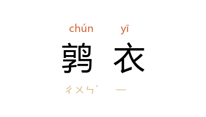 ⒈ 鹑鸟尾巴光秃,似缝补的衣服,故以鹑衣比喻破烂不堪的衣服。唐·杜甫〈风疾舟中伏枕书怀三十六韵奉呈湖南亲友〉诗:「乌几重重缚,鹑衣寸寸针。」也作「鹑服」。