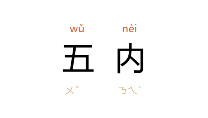《红楼梦》第三三回:“心中早已五内摧伤。”