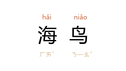 引《国语·鲁语上》:“海鸟曰‘爰居’,止於 鲁 东门外三日, 臧文仲 使国人祭之。”晋 张华 《鹪鹩赋》:“海鸟鶢鶋,避风而至。”唐 李白 《赠任城卢主簿潜》诗:“海鸟知天风,窜自 鲁 郊东。”陈福北 《祖国南海上的明珠--西沙群岛》:“那里的树林栖息着数以千万计的各种海鸟。”