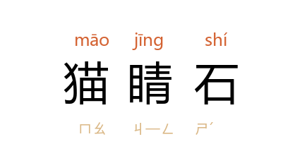 ⒋ 一种珍贵的宝石。其幻光性的金绿宝石亚种,表面具有猫儿眼睛中所见的垂直闪光亮带。一本作“猫睛”。