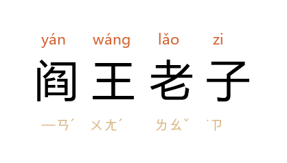引《西游记》第一回:“猴王道:‘今日虽不归人王法律,不惧禽兽威严,将来年老血衰,暗中有 阎王老子 管着。’”周立波 《山乡巨变》上一:“我大崽死了,得伤寒死的。他到 阎王老子 那里当军长去了。”