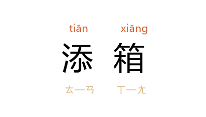 《俗语考原·添箱引茶香室丛钞》:「今人送嫁女家曰添箱。即古人所谓添房也。」
