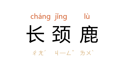 ⒈ 哺乳动物。产于 非洲。形似鹿而颈特长,高约六米。食草木嫩芽,奔跑很快。