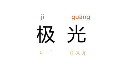 ⒈ 在地球高纬度地区出现的一种强光。因常在靠近北极和南极地区看到,故又分别称北极光和南极光。是一种由太阳辐射的带电粒子进入地球高纬度的高空,激发大气中的原子和分子而形成的发光现象。一般呈带状、弧状、幕状或放射状,色彩瑰丽壮观。