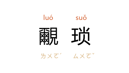 引《二十年目睹之怪现状》第七七回:“那个‘流’字,却不是三点水的,覼琐得很。”《二十年目睹之怪现状》第九一回:“伯芬 道:‘涉及外国人的事,总有点覼琐,但求师帅教训?’”
