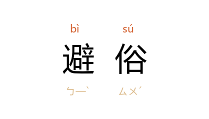 引唐 杨凭 《千叶桃花》诗:“若教避俗 秦 人见,知向河源旧侣夸。”元 卢挚 《渊明归来图》诗:“亡 秦 扶 汉 声隆隆, 渊明 初非避俗翁。”清 李渔 《闻过楼》第二回:“这一所住宅,也是个有趣的朋友起在这边避俗的。”
