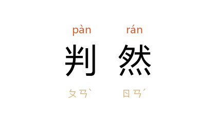 引宋 苏舜钦 《王公行状》:“苟遇物持平,轻重判然于中矣。”金 王若虚 《门山县吏隐堂记》:“嗟乎,出处进退,君子之大致,吏则吏,隐则隐,二者判然,其不可乱。”朱自清 《山野掇拾》:“又像医生用的小解剖刀,银光一闪,骨肉判然!”