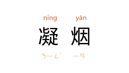 引南朝 宋 刘铄 《歌诗》:“凝烟汎城闕,凄风入轩房。”唐太宗 《祀北岳恒山文》:“叠嶂参差,凝烟含翠,重冈纷糺,照日分红。”殷夫 《给某君》诗:“漫着暮气凝烟的黄昏中,我们同踽踽于崎岖的街头。”