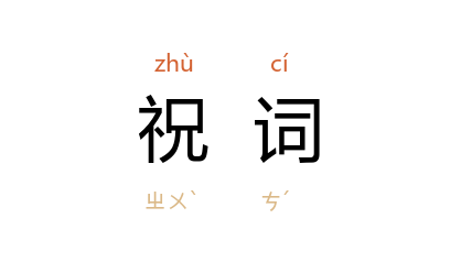 ⒈ 祭祀时祝祷之语或文辞;喜庆活动中祝颂的言词。