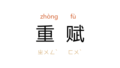 引《汉书·万石传》:“惟吏多私,徵求无已,去者便,居者扰,故为流民法,以禁重赋。”颜师古 注:“朝廷特为流人设法,又禁吏之重赋也。”《汉书·谷永传》:“峻刑重赋,百姓愁怨。”