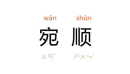 引北魏 贾思勰 《齐民要术·养羊》:“牧羊,必须大老子,心性宛顺者。”明 袁宏道 《妾薄命》诗:“旧人百宛顺,不若新人駡。”清 徐士銮 《宋艳·驳辨》:“小娟 叩头言曰:‘此亡姊 盼奴 事,乞赐周旋,非惟 小娟 感荷更生, 盼奴 亦蒙恩泉下也。’倅喜其词宛顺。”