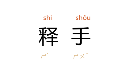 ⒈ 放手。前面多加否定词,表示对某事物十分爱好。
