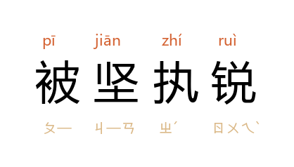 解释:穿坚固甲胄,握锐利武器。谓上阵战斗或作好战斗准备。出处:汉·班固《汉书·高帝纪》:“前日天下大乱,兵革并起,万民苦殃,朕亲被坚执锐,自帅士卒,犯危难,平暴乱,立诸侯,偃兵息民,天下大安,此皆太公之教训也。”
