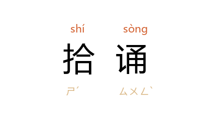引《鹖冠子·学问》:“圣人学问服师也,亦有终始乎?抑其拾诵记辞闔棺而止乎?”清 章学诚 《文史通义·诗教下》:“后世百家杂艺,亦用赋体为拾诵,盖与歌诀同出六艺之外矣。”清 陆以湉 《冷庐杂识·朱笠亭说诗》:“故惟 归愚先生 此书,最易拾诵。此书外,更取 阮亭 《古诗选》玩习。”