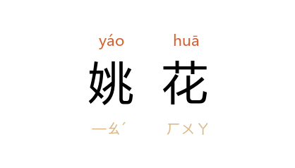 引宋 丘璿 《牡丹荣辱志·姚黄为王》:“名姚花以其名者,非可以中色斥万乘之尊,故以王以妃,示上下等夷也。”宋 黄庭坚 《乞姚花》诗之一:“正是风光嬾困时,姚黄开晚落应迟。欲雕好句乞春色,日历如山不到诗。”