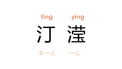 ⒉ 水清澈的样子。唐·韩愈〈曲江荷花行〉:「玉山前却不复来,曲江汀滢水平杯。」也作「汀濴」。