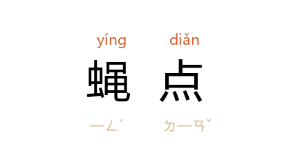 ⒈ 《诗·小雅·青蝇》:“营营青蝇,止于樊。岂弟君子,无信谗言。”郑玄笺:“蝇之为虫,污白使黑,污黑使白。喻佞人变乱善恶也。”后以“蝇点”比喻遭到谗人的诽谤诬蔑。